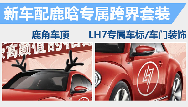 邀请鹿晗做甲壳虫的代言人本身是为了在年轻消费群体中起到明星效应,推出鹿晗X甲壳虫跨界版更像是为粉丝提供的一种福利。新车在外观上加装鹿晗专属跨界套装,包括表示“鹿饭”(鹿晗粉丝)身份的LH7专属车标,活力十足的鹿角车顶,以及鹿晗LH7车门装饰。其中“LH”就是专属小鹿的名称缩写,而7则是鹿晗的幸运数字。