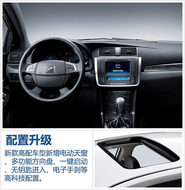 配置方面,除低配车型之外,2016款众泰Z300在后排区域增设12V独立电源及USB充电接口,同时2016款众泰Z300针对现款座椅增加了电动调节功能,提升新车的性价比。高配车型还新增电动天窗、多功能方向盘、一键启动、无钥匙进入、电子手刹等高科技配置。