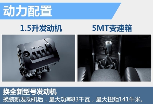 动力方面,最大的变化在于2016款众泰Z300换装了全新代号为TNN4G15B的1.5升自然吸气发动机,其最大功率为83千瓦,最大扭矩达141牛米,与发动机匹配的依旧是5档手动变速箱。
