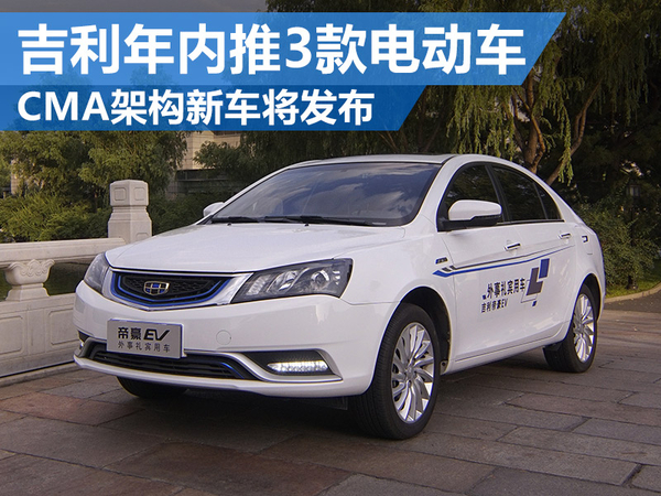 2016年6月23日,吉利帝豪EV外事礼宾用车交车仪式在北京举行。仪式后吉利集团总裁安聪慧先生在与网通社的沟通中透露:吉利集团将在下半年推出3款新能源车型,包括纯电动、油电混合动力以及插电混合动力车型。网通社进一步了解到,吉利集团还将在今年年底公布关于其CMA架构的完整规划。