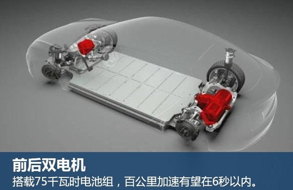 动力系统方面,按照特斯拉产品命名的规则来看,其字母D意味着新车采用了双电机的四驱模式;而数字75则代表了其将搭载75千瓦时的电池组。根据Model S入门版车型来看,特斯拉MODEL X 75D的前电机最大功率有望在190千瓦左右,后电机最大功率有望为190千瓦左右,续航里程有望在400公里左右;0-100公里/时的加速时间在6秒以内。