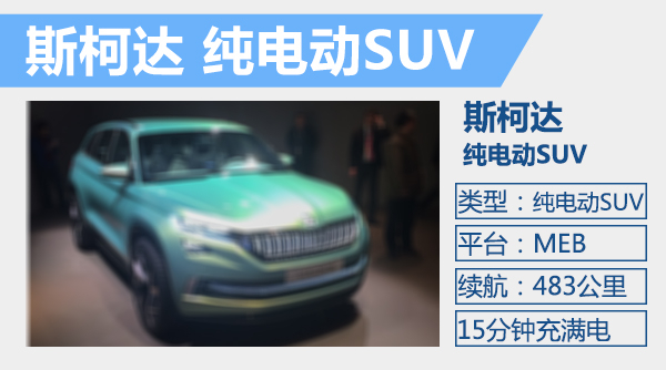 斯柯达日前公布,计划于2020年正式推出旗下首款纯电动SUV,该车将采用大众集团MEB电动车平台,续航里程将达到483公里,电池充满电仅需15分钟。根据大众集团近日公布的2025战略,该款电动SUV将是第三款采用MEB平台打造的纯电动车型。