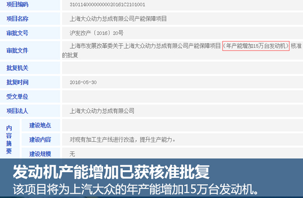 发动机小排量、增压化是降低排放和油耗的主要途径,对于大众而言,将在华投产更多小排量发动机。网通社从上海发改委了解到,上海大众动力总成有限公司将扩增15万台EA211发动机生产能力,届时上汽大众发动机年产能将增加至160万台,总产能提升超10%。此外,上汽大众正在酝酿EA211系列1.0TSI发动机在中国的生产计划。