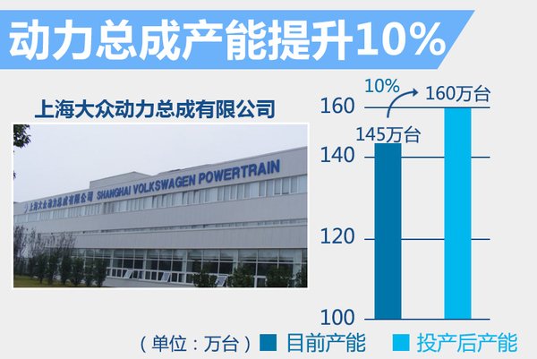 根据上海大众动力总成有限公司产能保障项目中提到的信息,上汽大众将在现有产能基础上再扩增15万台EA211发动机生产能力,总产能有原来的145万台增加至160万台,增加了10%的发动机生产能力。