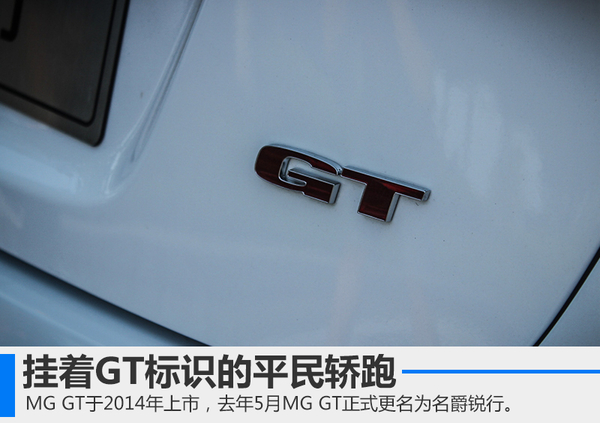 “GT”这个词是拉丁语“Gran Turismo”的缩写。在现代赛车运动中,“GT”代表了性能优秀的大马力跑车。2014年,一台来自上汽名爵的“GT”横空出世,一直以平民轿跑自居。