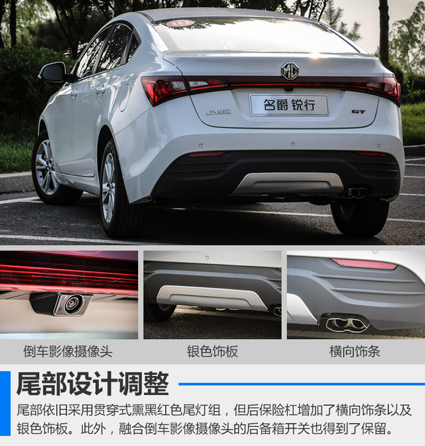 溜背式设计配合上翘的鸭尾,有着非常不错的运动感。锐行独特的贯穿式熏黑红色尾灯组毫无意外的被继承了下来。但在后保险杠的设计上,新款车型做出了一些调整,增加了横向饰条以及银色饰板,使尾部细节更加丰富。