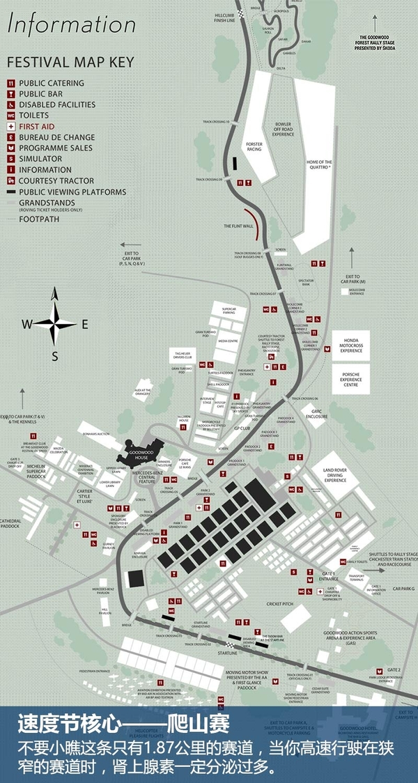 首先要跟大家说说古德伍德的地理位置,它位于英国西萨塞克斯郡,严格意义来说规模只是个小镇,早在1802年这里就建造赛马场来举办赛马比赛,所以日后这里能够举办世界瞩目的赛车盛典也就不足为奇了,因为人家有这个传统和文化底蕴。