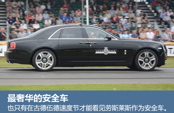 显然这些赛车在性能上完全没有可比性,但是在古德伍德速度节上,交流和展示的意义远大于竞赛的本身,人们带着欢乐参与到这项传统形式的赛事中,输赢早已置之度外。很多弥足珍贵的经典老车只能在赛道上闲庭信步,因为年代久远,这些车不能出现半点差池。同时赛会的安全车也是一道风景,除了在古德伍德速度节,你不会在其他地方看见全世界最豪华的“安全车”劳斯莱斯,用它作为安全车也有一定的道理,因为它就产自古德伍德。