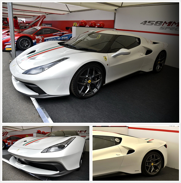 法拉利同样不会错过在速度节上秀一把的机会,马拉内罗工厂为车迷带来了458 MM Speciale这款基于458 Speciale打造的跑车,其最大特点是车身A柱及车顶均采用了全新设计,平直的车顶及尾部线条,配合全新的车身腰线,使得新车看起来多了几分犀利风格。为什么限量 一台?因为这是一位英国客户定制的,能有一辆法拉利都不能满足,还必须绝无仅有,这个B装的我给满分。