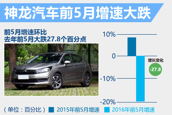 神龙汽车公司5月汽车销量仅有4.73万辆,同比下降23.74%。1-5月份,神龙汽车公司实现累计销售24.34万辆,相比于去年同期的30.84万辆,下滑了21.08个百分点。据了解,神龙汽车公司今年的销量目标是76.5万辆,前5个月完成了目标的31%,这意味着神龙汽车实现全年目标难度较大。