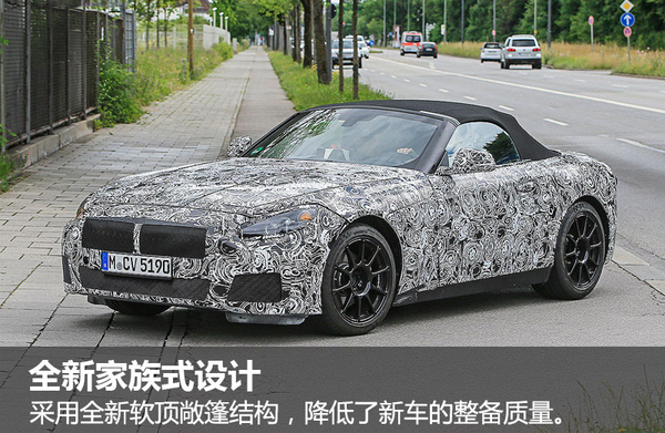外观方面,作为宝马Z4的继任车型,全新Z5采用了家族式的设计理念,并且延续了双肾型进气格栅的前脸设计。但与Z4跑车相比,新车则采用了软顶敞篷结构,从而降低了车身的整备质量。