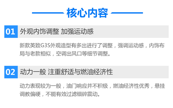 不久前,潍柴英致G3迎来了更新,新款G3推出了G3和G3S两款车型,其中2016款继承了老款G3的客户定位,主要面向成熟稳重、追求实用性价比的用户;而G3S的设计更加年轻化、运动化,主要针对追求动感、时尚的年轻一族。本次试驾车型为2016款英致G3S(下文用“英致G3S”表示)。