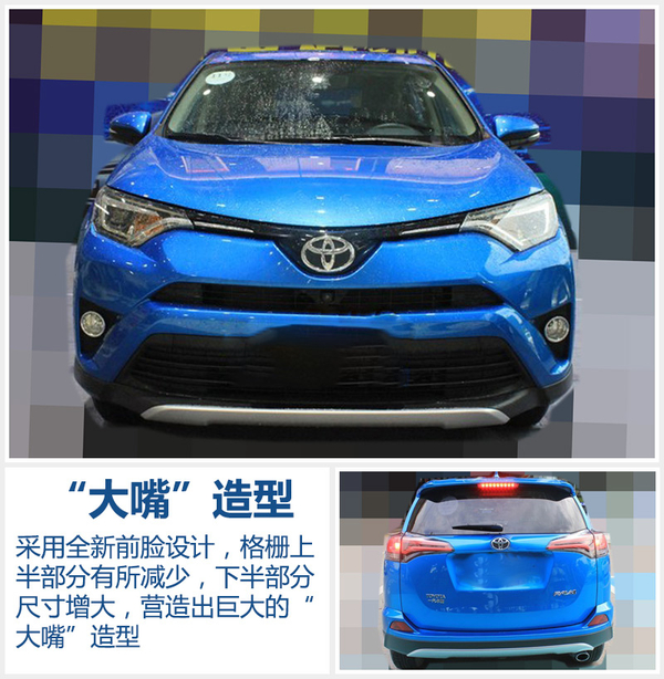 新款RAV4在外观方面延续了海外版车型的设计,主要的变化在于前脸部分,采用新的家族式“大嘴”设计,与海外版保持一致。