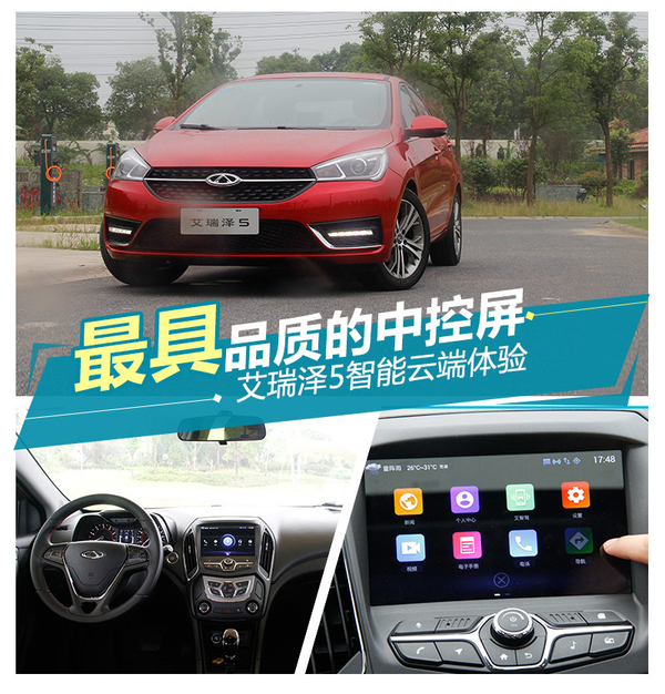 奇瑞艾瑞泽5上所搭载的是一套来自科大讯飞自主研发的车载智能中控系统,其本身有两大亮点,一是支持车载WIFI功能,车内乘客可通过链接车载WIFI进行娱乐等活动;二是支持语音识别功能,该语音可识别多种不同的方言语调,识别准确率十分高。此外,该系统还拥有手机映射功能,从系统的反应流畅度以及屏幕分辨率来看,这套多媒体智能大屏均可得到很高的分数。