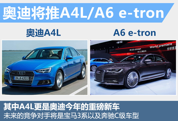 对于下半年的规划,奥迪将推出A4L、A6 e-tron两款车型来确保销量的增长,其中A4L更是奥迪今年的重磅新车,未来将竞争宝马3系以及奔驰C级车型。此外,A6 e-tron的引入也将为刺激销量贡献出一份力。