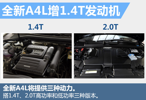 动力方面,全新A4L将提供1.4T、 2.0T低/高功率三款车型,1.4T发动机最大功率110千瓦,最大扭矩250牛米。2.0T低功率版车型40TFSI,最大功率为139千瓦,最大扭矩320牛米。高功率版车型45TFSI,最大输出功率为185千瓦,相比低功率版的车型增加了46千瓦,在动力上进一步提升。