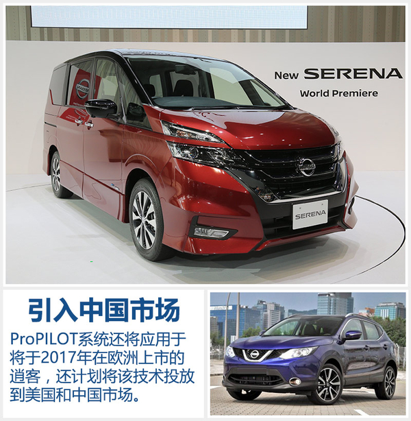 日产汽车为了让ProPILOT系统更好地适应其投放的各个市场,正在深入研究不同地区的驾驶条件。此次搭载在日产Serena的ProPILOT系统正是为适应日本高速公路驾驶条件而研发的。此外,ProPILOT系统还将应用于日产汽车其它车型,包括将于2017年在欧洲上市的逍客,日产汽车还计划将该技术投放到美国和中国市场。