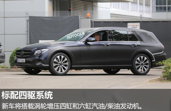 动力方面,梅赛德斯-奔驰全新E级All-Terrain将延续新一代E级旅行车的动力配置,搭载一系列不同排量的涡轮增压四缸和六缸汽柴油发动机,并且标配有四驱系统。此外,新车还配备了可调节高度的空气悬挂,能够在高速行驶时降低离地间距,提升稳定性。