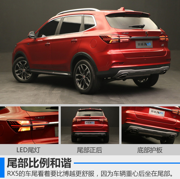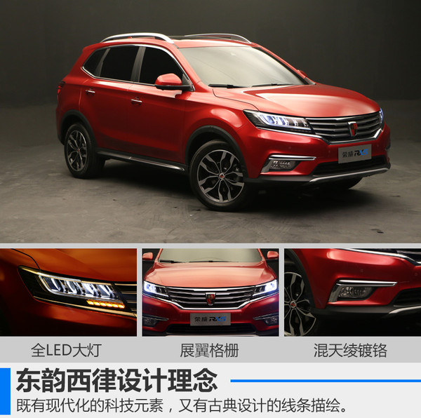 荣威RX5的外观设计结合了东韵西律的理念,既有现代化的科技元素,又有古典书法的线条描绘。比如前大灯采用了全LED芯片作为光源,家族式展翼格栅尺寸更大,宽度更广,视觉上更加扁平化。而用心体现在一些细节方面,比如有驻笔的腰线线条,同时也形成明暗的光影效果,豚跃式C柱设计让尾部不死板不蠢笨,车辆重心后坐在尾部,这一点设计要比博越好,因为博越给人一种尾部上扬的跳跃感。