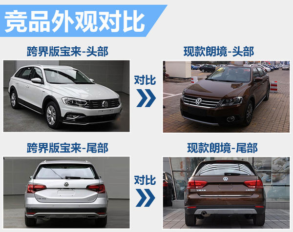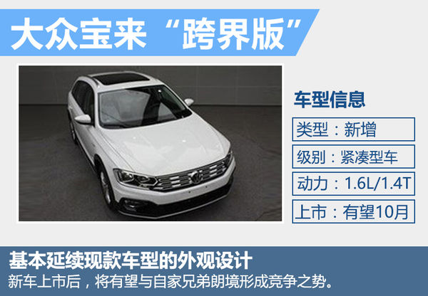 全新宝来跨界版基本延续了现款宝来三厢车型的外观设计风格,区别在于新车采用了三横幅式前进气格栅,经过重新设计的头灯组以及应用了全新的保险杆造型。该新车或将被命名为“宝来C-TREK”并有望于10月正式上市。上市后,新车将有望与自家兄弟朗境形成竞争之势。