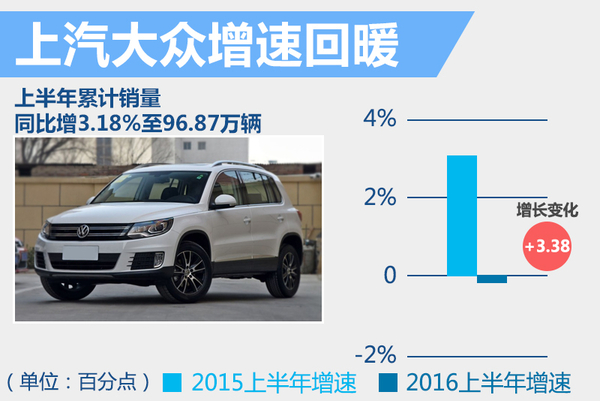 | 车企名称 | 2016上半年销量同比幅度 | 2015上半年销量同比幅度 | 销量增速趋势(百分点) |