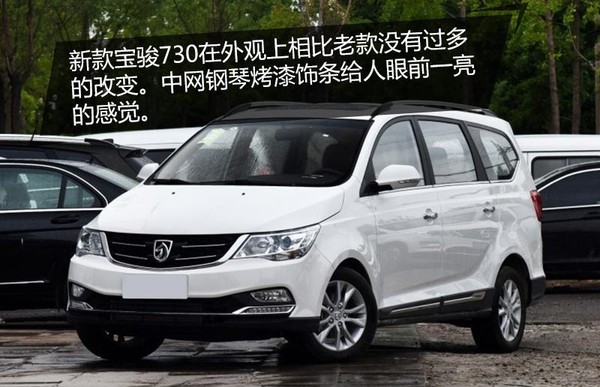 新款宝骏730在外观上相比老款没有过多的改变。中网钢琴烤漆饰条给人眼前一亮的感觉,富有运动感的前大灯组与中网相连,灯组内部的组合方式依然为卤素灯源,LED日行灯在雾灯下方并且与镀铬饰条融为一体,依然是憨厚朴实的气质。
