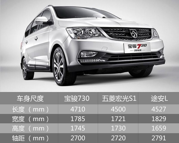 在车身尺寸上,宝骏730相比目前市场上面主流的几款7座位MPV,在长度与高度上均占有较为明显的优势。