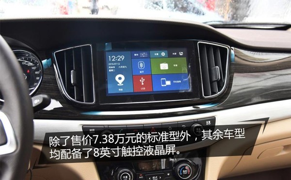 除了售价7.38万元的标准型外,其余车型均配备了8英寸触控液晶屏,同时下方也集成了USB以及HDMI双屏互联高清接口。