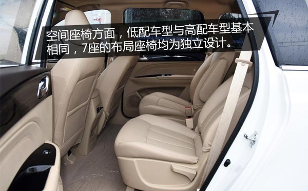 空间座椅方面,低配车型与高配车型基本相同,7座的布局座椅均为独立设计,并且第二排座椅前后可调整的余地比较大,为第三排乘客提供更宽敞的乘坐空间。