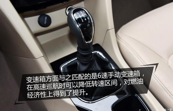 变速箱方面与之匹配的是6速手动变速箱,在高速巡航时可以降低转速区间,对燃油经济性上得到了提升。