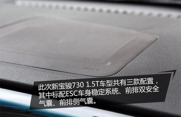 此次新宝骏730 1.5T车型共有三款配置,其中标配ESC车身稳定系统、前排双安全气囊、前排侧气囊、后倒车雷达、电加热后风挡玻璃、外后视镜电动调节等,对日常驾驶的全面性基本都包括了。