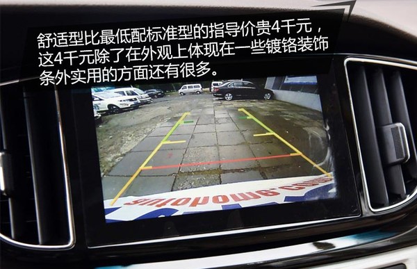 舒适型比最低配标准型的指导价贵4千元,这4千元除了在外观上体现在一些镀铬装饰条外实用的方面主要在真皮座椅、倒车雷达、倒车影像,以及8英寸的中控液晶屏幕,并且马牌轮胎也相对更好,总之还是物超所值的。