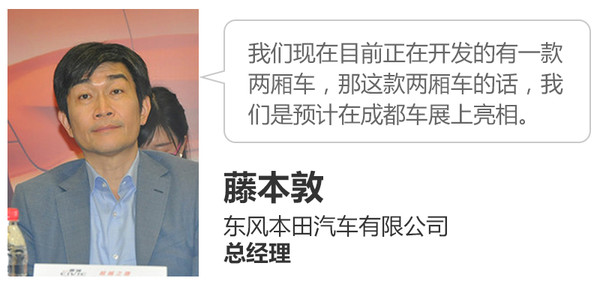 关于这款车发布的具体时间,东风本田汽车有限公司总经理藤本敦向网通社表示:“我们目前正在开发的有一款两厢车,预计在成都车展上亮相。”动力方面,新车将延用哥瑞的1.5升自然吸气发动机。