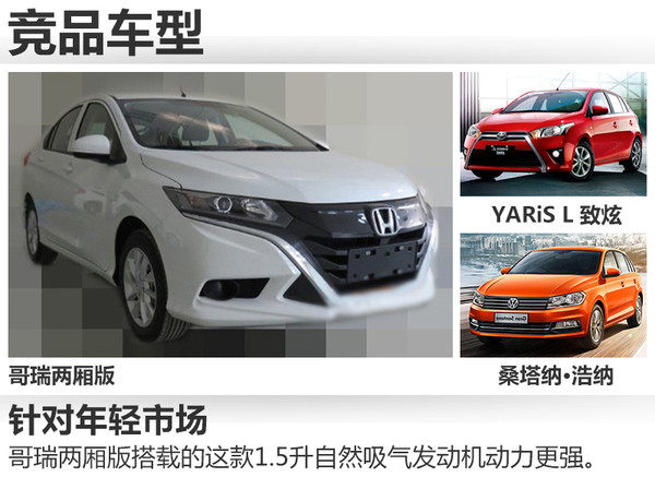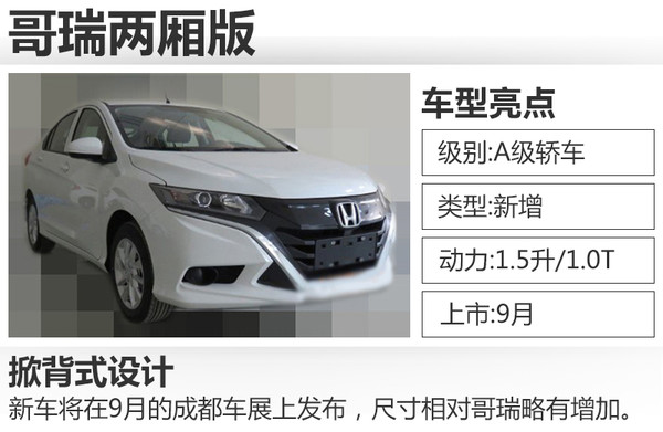 动力方面,新车将搭载与哥瑞相同的1.5升自然吸气发动机。现款哥瑞所搭载的这款发动机最大功率为96千瓦,峰值扭矩155牛米。传动方面,与这款发动机匹配的是5挡手动变速箱或CVT无级变速箱。东风本田思域年底将推出搭载1.0T发动机的车型,作为同为A级车的哥瑞,未来也有望搭载这款发动机。