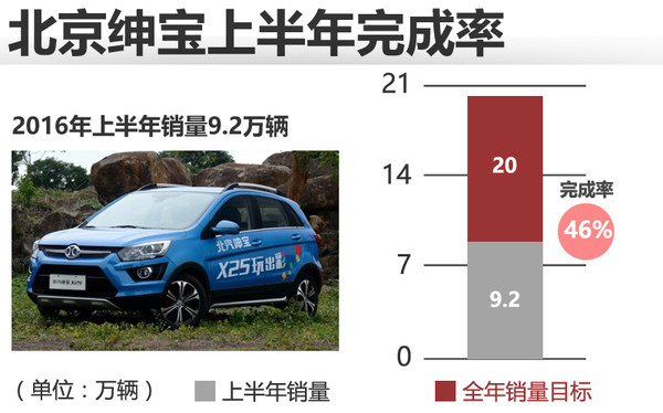 2016年上半年销售9.2万辆,2016年的销量目标为20万辆,完成率46%。
