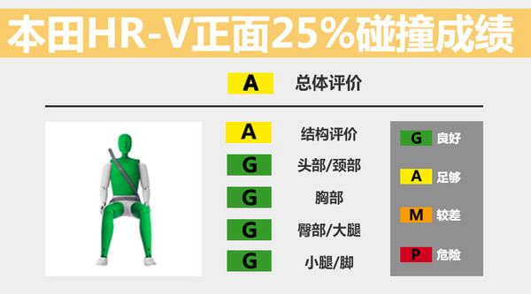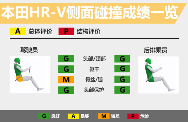 编者说:作为一款小型SUV,本田HR-V在正面碰撞测试中取得了良好的成绩,尤其是严苛的正面25%小面积碰撞测试表现出色,碰撞中车辆可为驾驶员提供充分的防护。而相对“温和”的侧面碰撞测试中,驾驶员假人有受伤风险,HR-V的侧面碰撞保护还需进一步加强