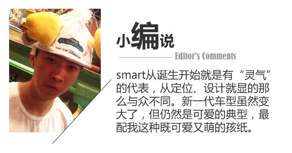 个性、可爱、灵活三个词用来形容一款车,在脑海中最先跳出来的名字是什么?是MINI,甲壳虫,我想应该是smart。即使没有豪华车的身价,smart吸引人眼球的能力也是出类拔萃。双座的设计的smart fortwo让两人世界更加私密,而smart forfour使两人世界拥有更多的空间。将经典的双门smart继续传承,而又突破似得出现四门smart的新玩法,看来一定会很精彩。