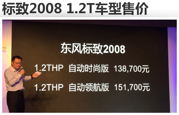 2008是东风标致旗下的一款小型SUV,此前仅搭载了1.6升自然吸气和1.6THP涡轮增压两种动力,接下来2008还推出1.2THP的小排量涡轮增压车型,燃油经济性表现将更加出色。网通社从东风标致官方了解到,标致2008 1.2THP版本正式上市,新车共推出自动时尚版和自动领航版两款车型,售价分别为13.87和15.17万元。