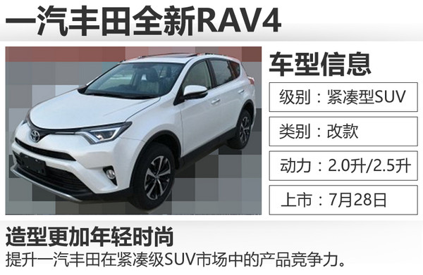 | 一汽丰田 | 全新RAV4 | 紧凑型SUV | |