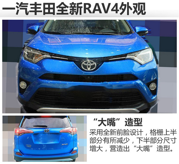 全新RAV4在外观方面延续海外版车型的设计,主要的变化在于前脸部分,采用新的家族式“大嘴”设计,与海外版保持一致。