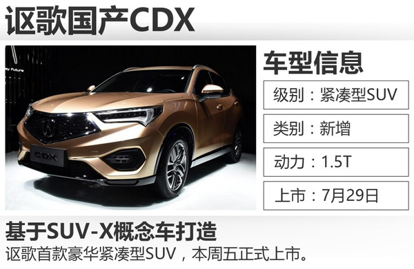 | 讴歌 | 国产CDX | 7月29日 | |