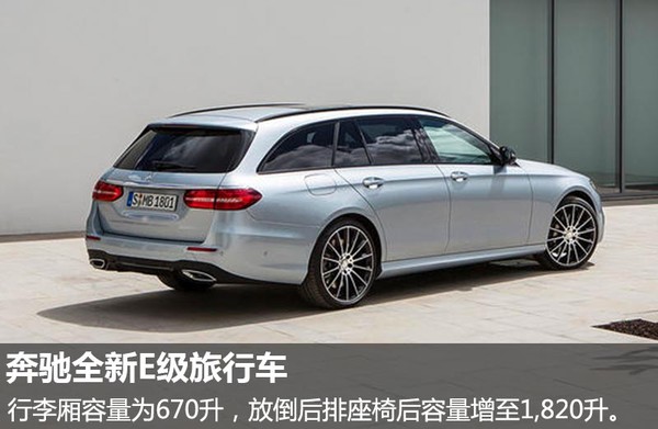 梅赛德斯-奔驰全新E级旅行车的设计风格与C级旅行车保持一致,内饰则借鉴了全新E级轿车的风格。新车的行李厢容量为670升,后排座椅能够以40/20/40的比例放倒,在完全放倒后行李厢容量提升至1,820升。SE版本车型配备了卫星导航、镀铬行李架、DAB收音机和17英寸铝合金轮辋。