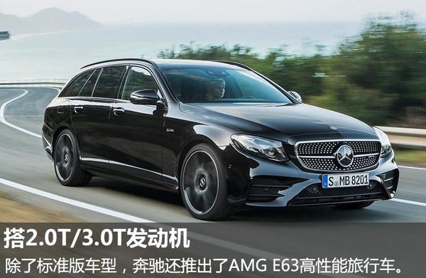 动力方面,奔驰全新E级旅行车将搭载多款输出各不相同的汽油和柴油发动机,其中包括排量为2.0升的涡轮增压发动机,最大输出功率为145千瓦,以及排量为3.0升的V6涡轮增压发动机,最大输出功率为192千瓦。除了标准版车型,奔驰还推出了一款AMG E63高性能旅行车。