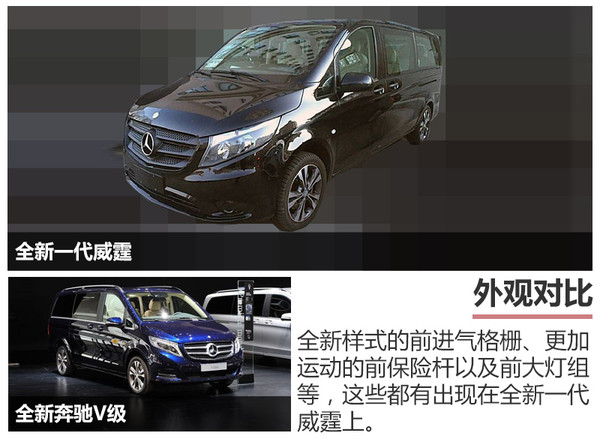 与全新奔驰V级相比,新车在外观方面变化不大。全新样式的进气格栅、更加运动的前保险杆以及前大灯组等,这些都有出现在全新一代威霆上。新车整体造型看起来更加富有层次感与立体感,同时五辐造型的轮毂也为新车增添了不少时尚的气息。