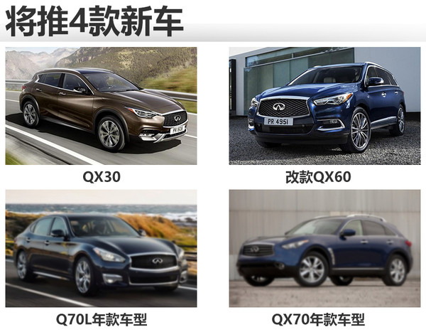 今年上半年,2016款Q50L和新款QX80已经先后完成上市,特别是新款QX80在配置提升的同时,售价还降低了33万,更容易被市场认可。根据英菲尼迪官方公布的消息,今年下半年还将有4款新车投入市场,除了首款紧凑型SUV QX30以外,还有中期改款的QX60、年度改款的QX70和Q70L。(图/文网通社张雪莲)