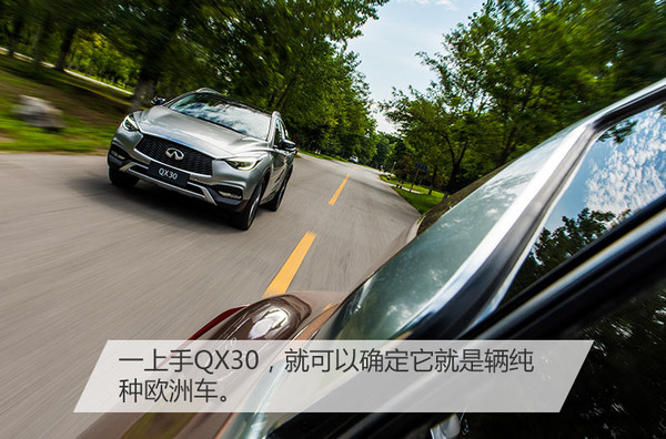 一上手,QX30偏重且精准的转向手感与硬悬架很明显不是红脖子老美喜欢的类型,不灵巧的起步风格也不像岛国车。英菲尼迪再怎么调校,梅赛德斯的底子也在那里。比起只借用发动机的Q50,QX30真的很奔驰。