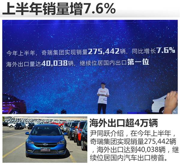 经过19年的坚持,奇瑞如今成为了第一个乘用车销量突破500万辆的中国自主品牌。在今年上半年,奇瑞集团实现销量275,442辆,同比增长7.6%,海外出口量达到40,038辆,继续位居国内汽车出口榜首。经历由转型引起的内部、外部波动,奇瑞已逐渐走出阴霾。