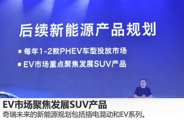 除基于新技术每年推出一到两款的插电混动车型外,奇瑞在纯电动车领域也将有所布局。陈安宁表示:“在EV市场,奇瑞将重点聚焦发展SUV产品。”