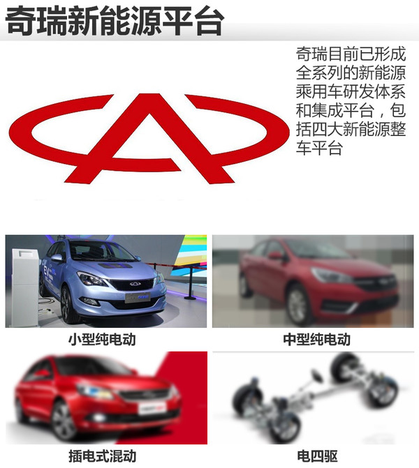 奇瑞目前已形成新能源乘用车研发体系和平台,包括四大新能源整车平台;五大通用子系统(动力电池系统、电驱动系统、整车控制系统、PHEV动力总成、电驱动后桥);七大核心技术(电池管理技术、电池系统设计、整车控制技术、PHEV系统设计、智能互联设计、轻量化技术、新能源整车集成)。