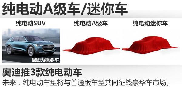 除了首款纯电动SUV车型外,未来奥迪还将推一款纯电动A级车和一款纯电动迷你车型。在奥迪的企业发展规划中,奥迪的生产重心将向电动车、数字化服务和自动驾驶领域靠拢,并且有望进军微型车市场。未来,纯电动车型将与普通版车型共同征战豪华车市场。